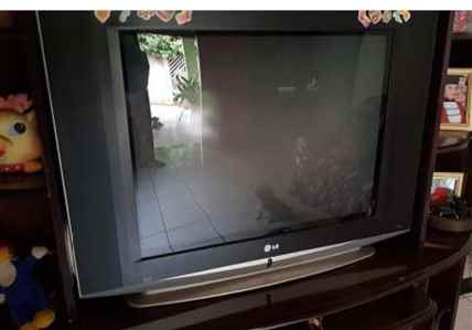 UM TELEVISOR DA MARCA LG, 29 POLEGADAS, TUBULAR, COR CINZA E PRETO